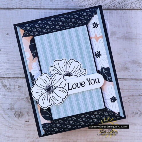 For these cards, I’m using Stampin’ Up!’s Lovely Arrangements stamp and die set.  That gorgeous paper is the Lovely Blossoms Designer Series Paper.