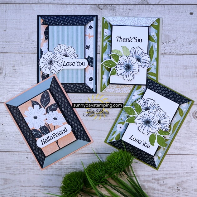In this video, I’ll share a paper-saving tip for creating the pointed panels and a handy trick for cutting an image from patterned paper so it fits perfectly on the front of your card. These simple tips will help your handmade cards come together quickly and look beautifully polished.