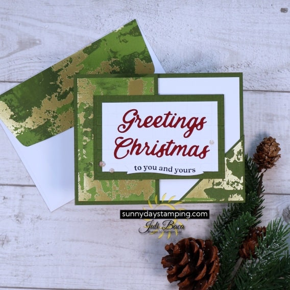 I used Stampin’ Up!’s Words of the Season stamp and die set paired with the Season of Elegance Designer Series Paper to make these elegant cards.