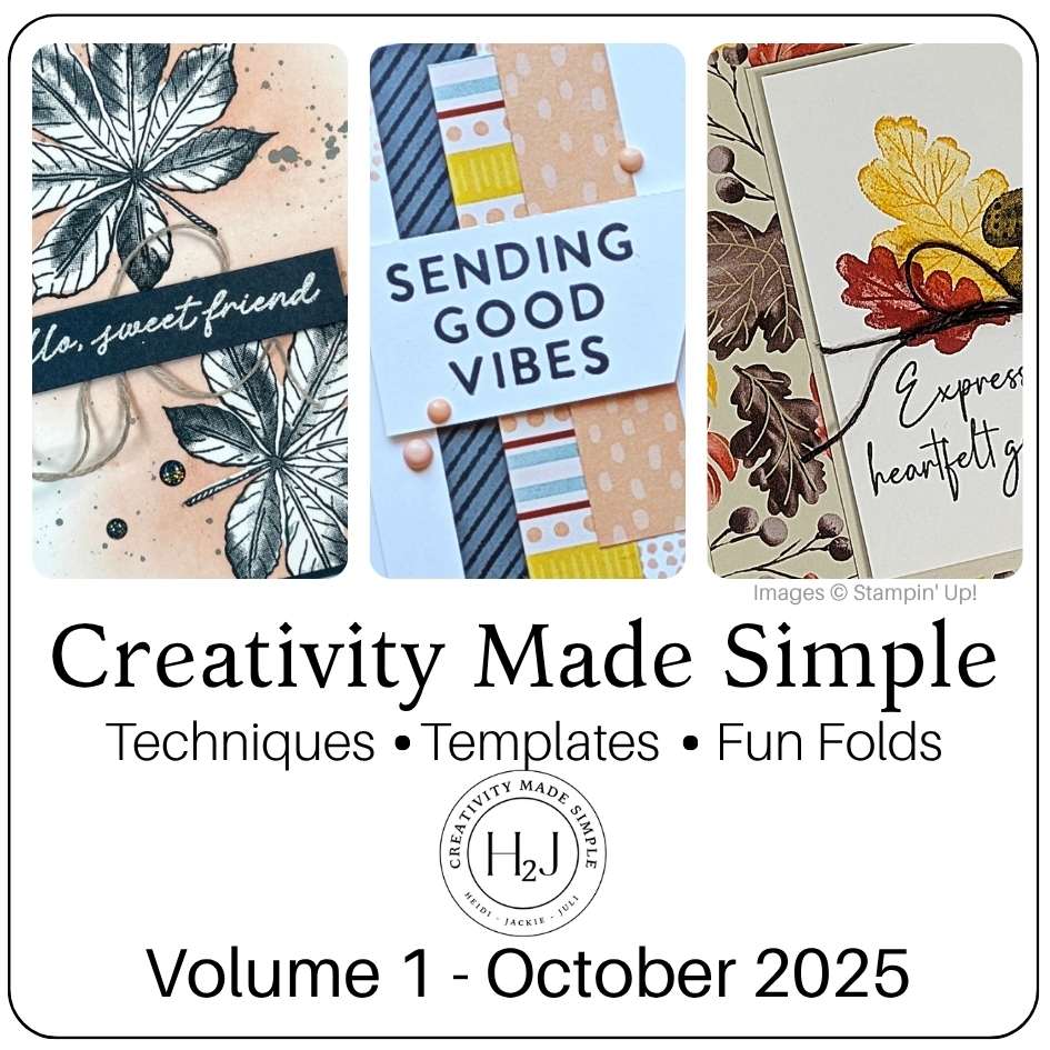 The “Creativity Made Simple” tutorials are free with a $50 Stampin’ Up! order with me in the month they are released.  My team members also receive access to download them all!